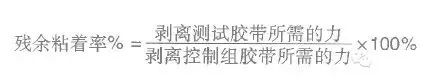 殘余接著強(qiáng)度指壓敏膠面材在指定條件下與硅酮離型底材先接觸,之后將其貼在標(biāo)準(zhǔn)測試板上制成標(biāo)準(zhǔn)測試片,之后在固定的剝離角度、速度下,從標(biāo)準(zhǔn)試片上將其剝離時(shí)所需要的力。而殘余接著率是以百分比表示的,是將上述壓敏膠面材殘余粘著強(qiáng)度比上同一面材在不接觸硅酮離型底材前提下與標(biāo)準(zhǔn)測試版貼合所產(chǎn)生的粘著強(qiáng)度的比值。